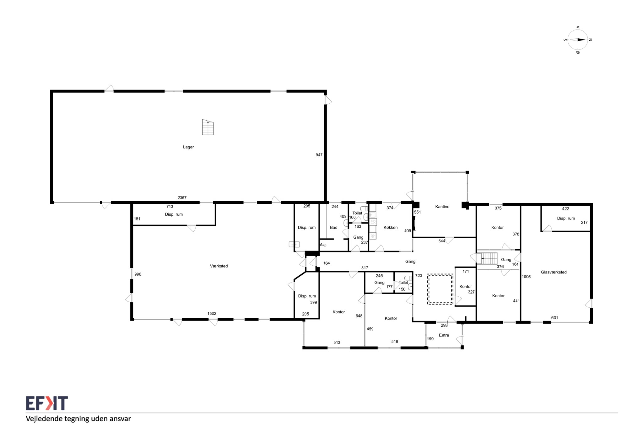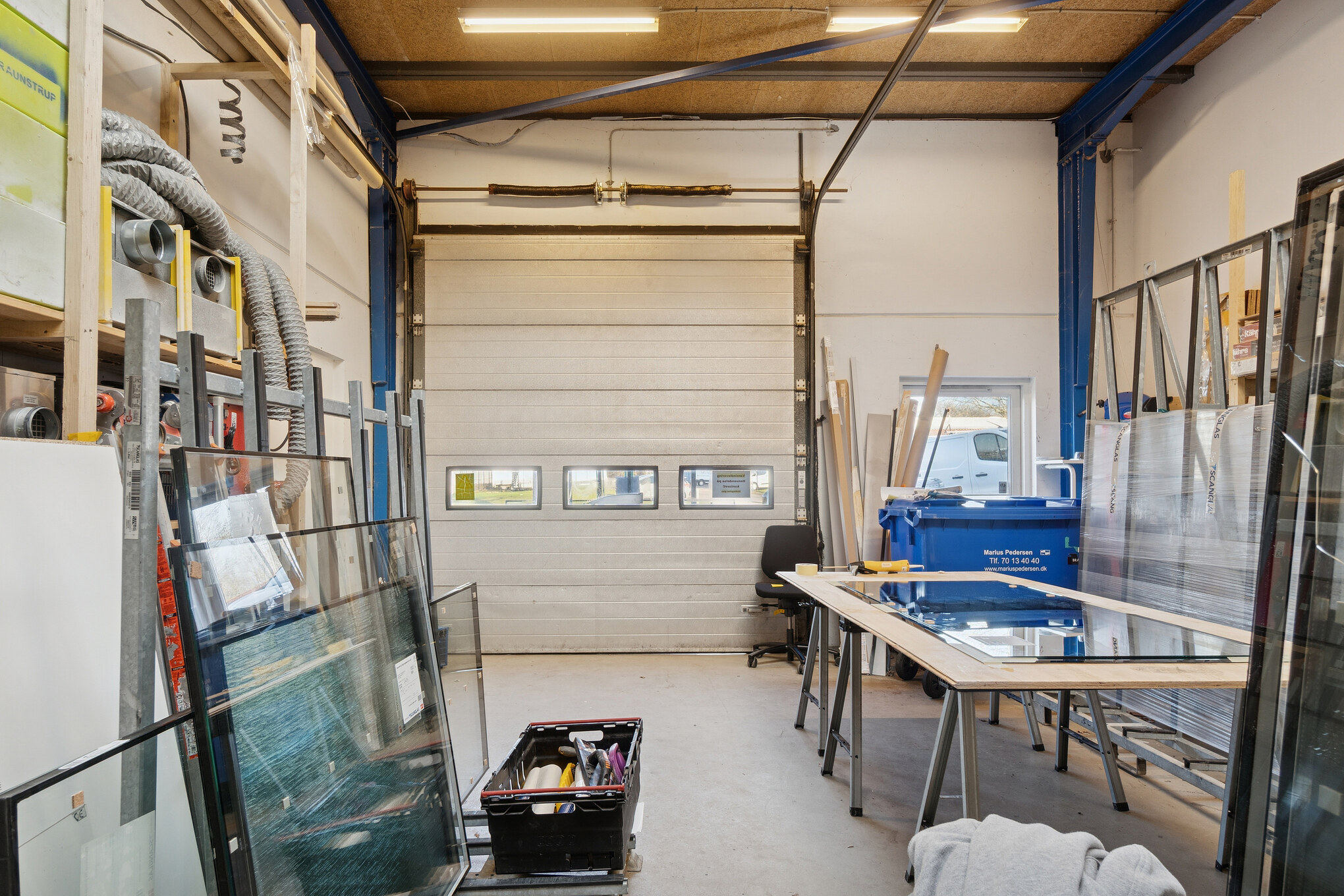 Denne ejendom er som skabt til håndværksmester, entreprenør eller anden erhvervsdrivende, der har behov for både kontor- og værkstedsfaciliteter under samme tag – samt gode lagerforhold og plads til udendørs opbevaring eller parkering af maskiner, biler eller materialer.