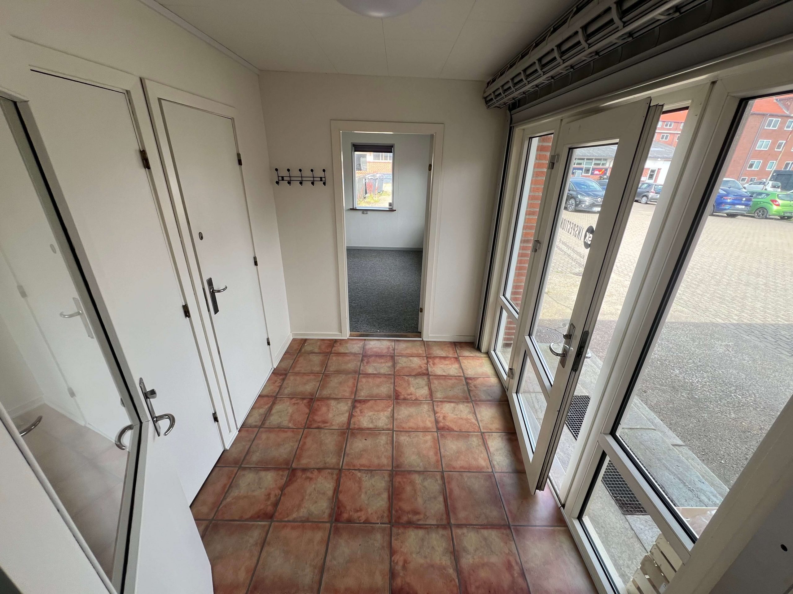Lejemålet er indrettet med en funktionel planløsning, der giver fleksible anvendelsesmuligheder. Du træder ind i en entré, hvorfra der er adgang til et separat kontor på højre hånd. Til venstre åbner lejemålet sig op i et stort og lyst kontorrum med plads til flere skrivebordspladser eller en åben kontorindretning.