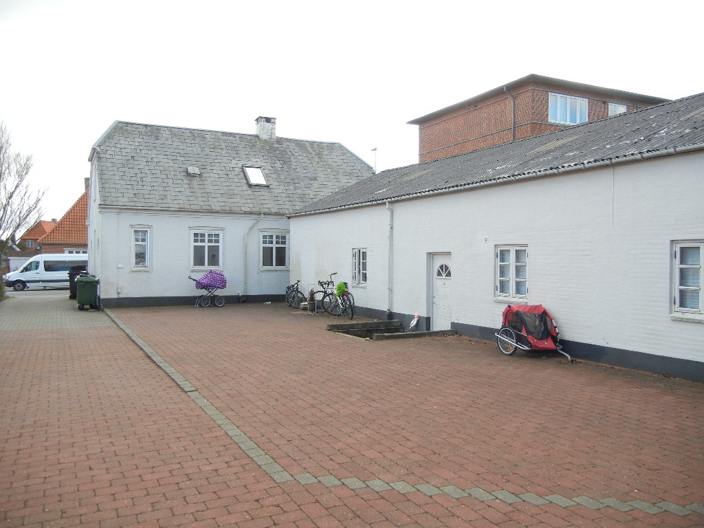 Den udbudte ejendom omfatter en hovedbygning med 2 lejligheder, en sidebygning med yderligere to lejligheder samt en stor garage.